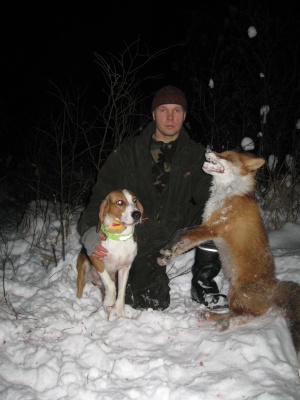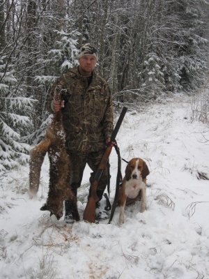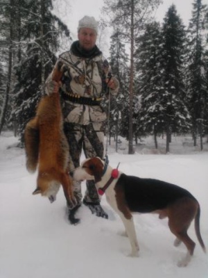 9-vuotias, varma ylösottaja, herättelee. Käytetty aktiivisesti ketun ja ilveksen metsästykseen. Ajanut myös sutta.